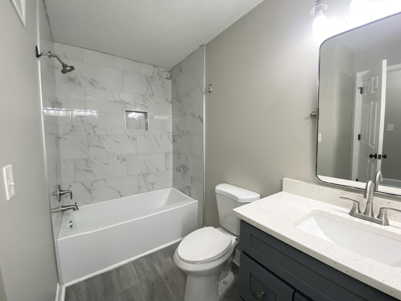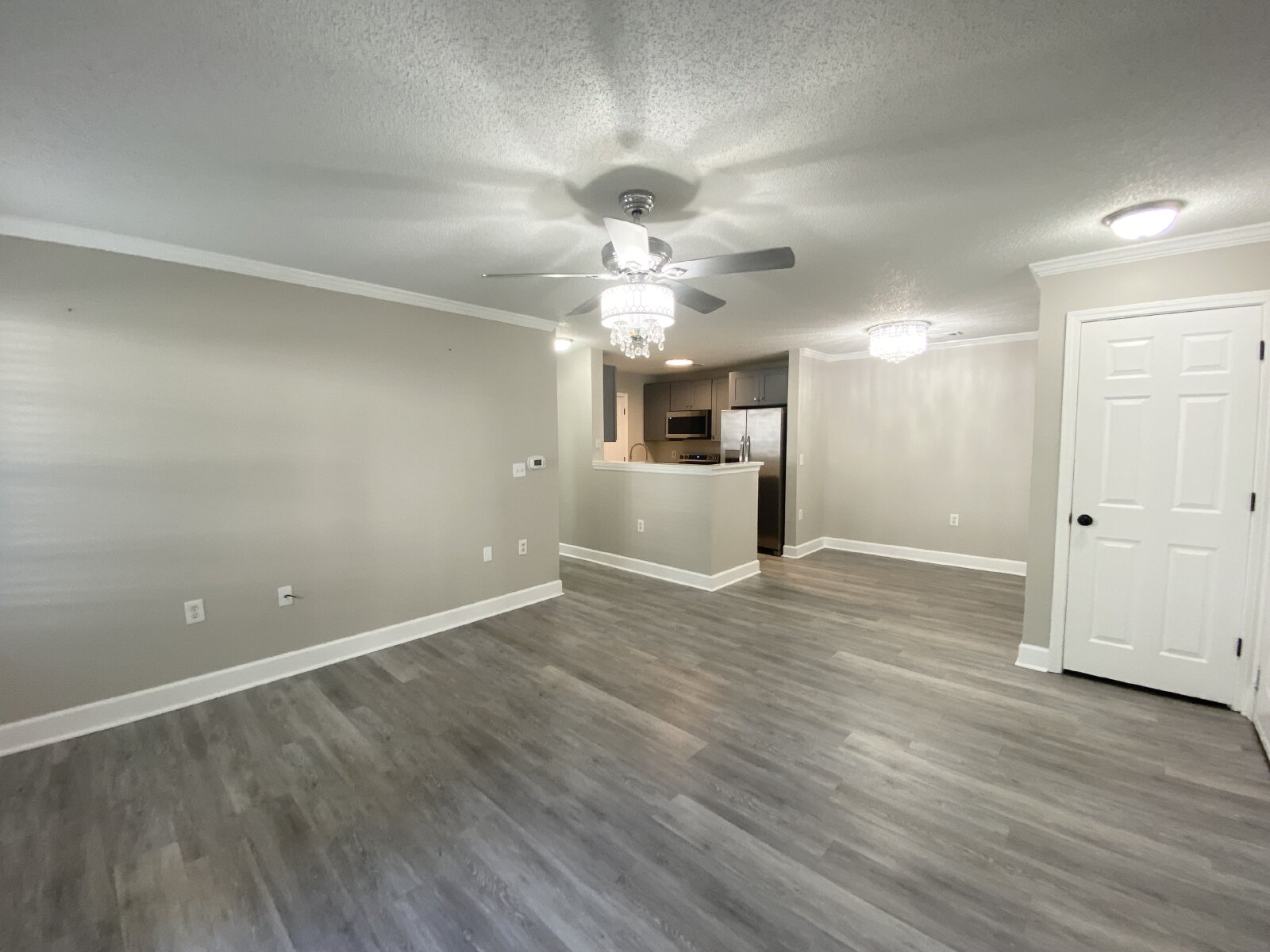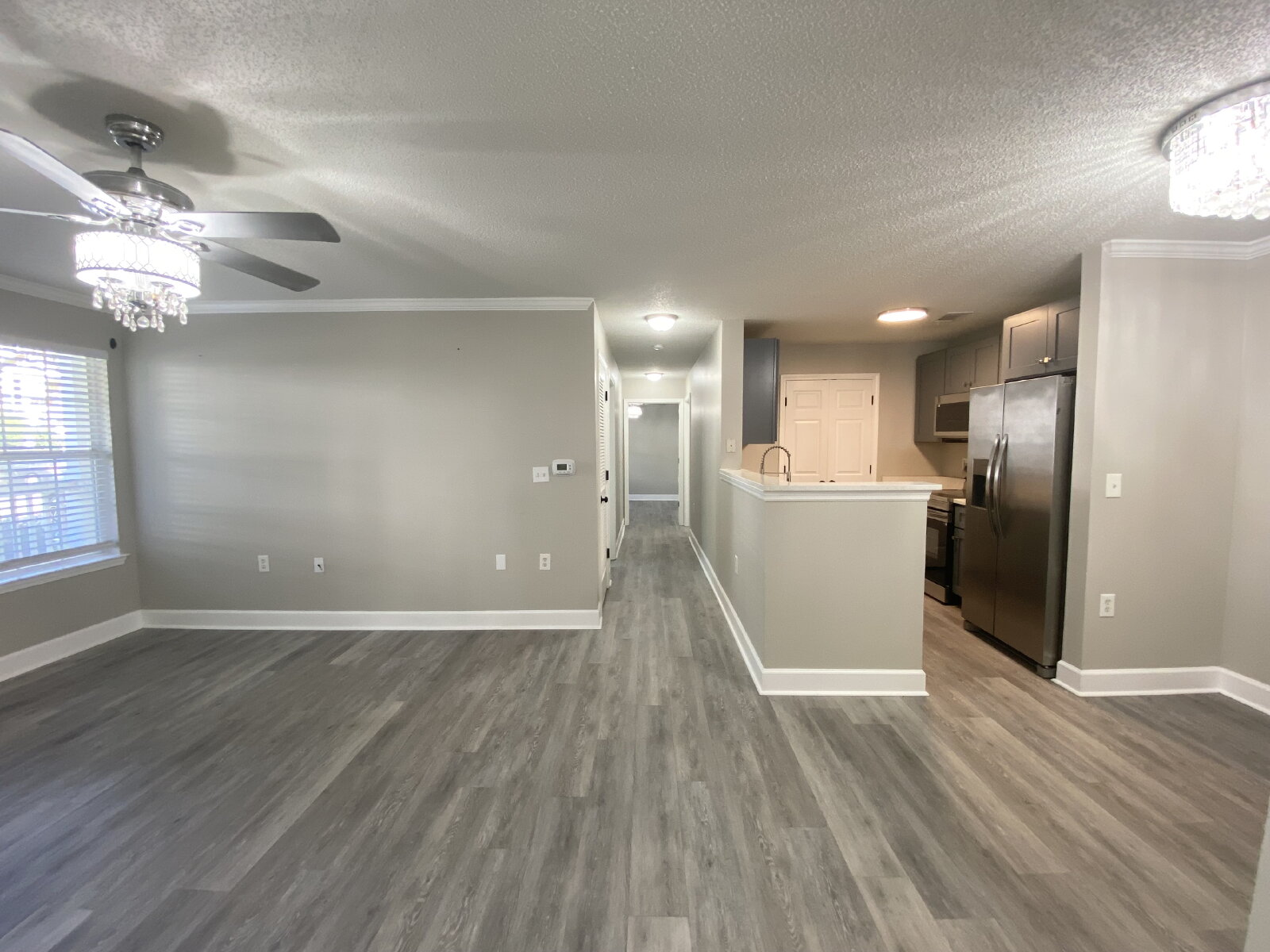 This delightful 2-bedroom condo offers an updated space with 867 square feet of a well-designed floor plan! The living area seamlessly blends with a modern kitchen, designed for both functionality and style. Throughout the condo are updated fixtures, paint, and flooring. The full bathroom offers a double vanity with a beautiful shower tub combo. Both bedrooms have ceiling fans and walk-in closets. The large front porch is perfect for outdoor living and has an additional storage closet.