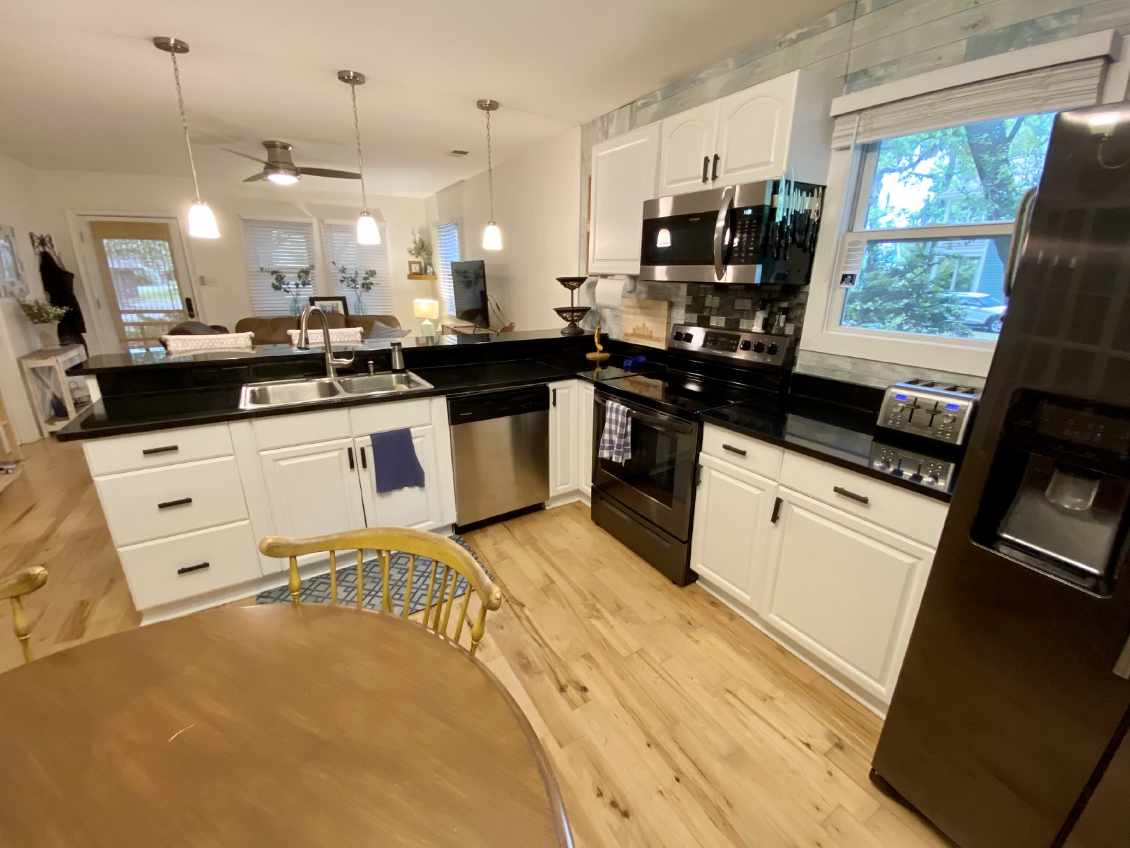 This home has a very open floor plan, all appliances, and beautiful solid flooring that runs throughout the main living area and master bedroom. The master bedroom is spacious with a king-sized bed, its own bathroom with a walk-in shower, and a laundry closet with a washer and dryer. You also have two guest bedrooms, one with two twin beds, and the other with a queen-sized Murphy bed. Both are connected by a jack and Jill bathroom. There is ample outdoor living space, including two screened-in porches. Enjoying the beautiful weather of the Lowcountry is made easy in this home.