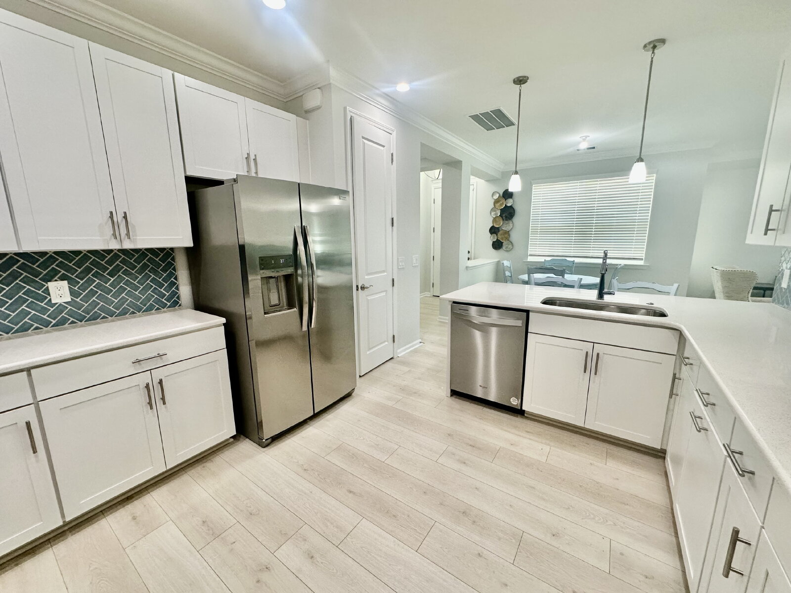 All you need is a swim suit and flip flops to be able to move into this fully furnished, charming light and bright two-bedroom, two-bathroom home with a flex/office space located in Latitude Margaritaville! Vinyl plank flooring runs throughout this whole house, along with updated light fixtures and ceiling fans. The open-concept living space is perfect for seamless entertaining and the living room opens up onto the screened-in lanai. The primary bedroom has trey ceilings, an on-suite bathroom, and a walk-in closet!