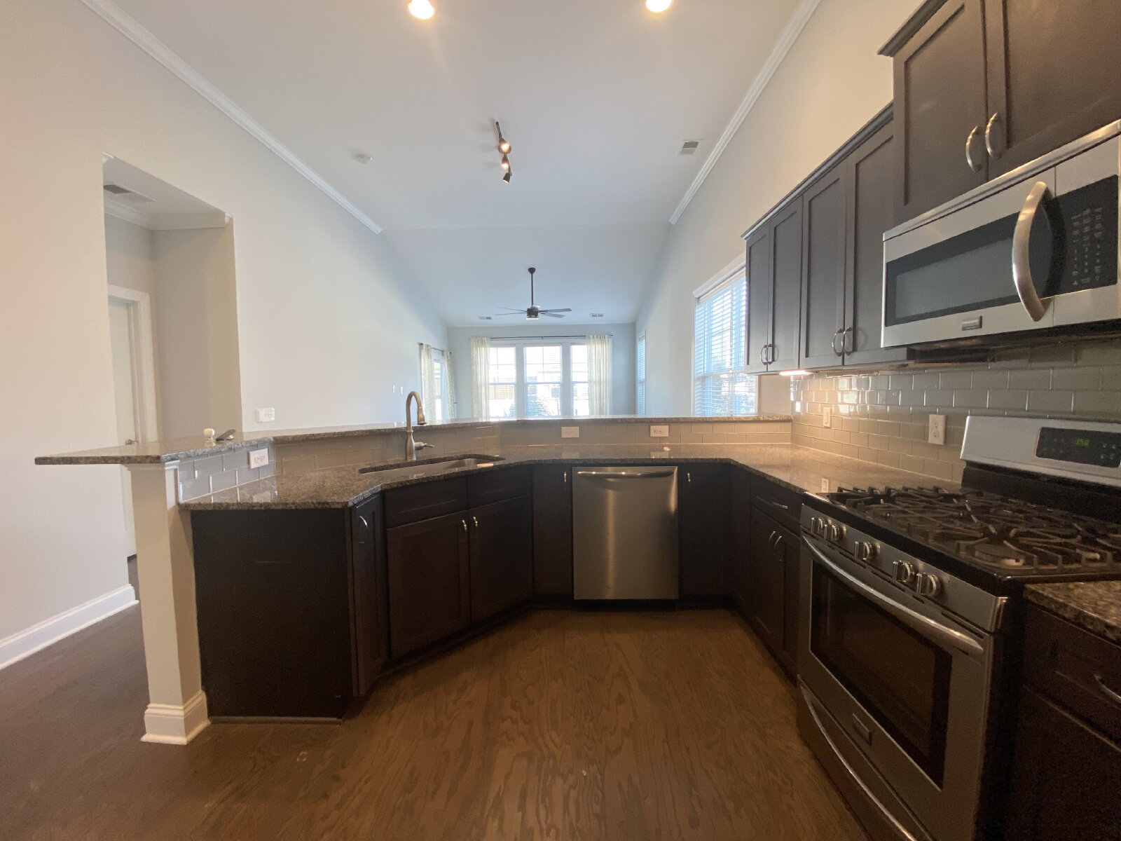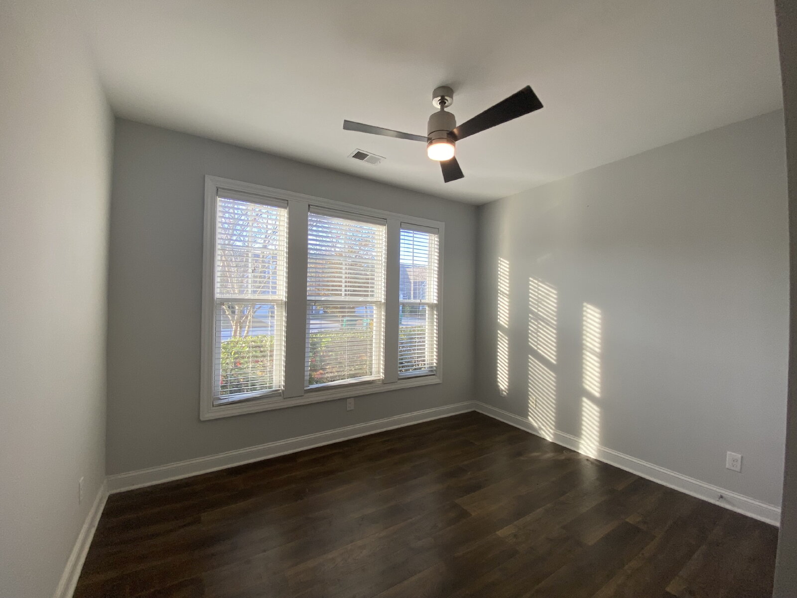 Welcome to 255 Wooden Wheel, a four-bedroom three-bathroom townhouse located in Cypress Ridge. Being an end unit, this home features ample natural light from various windows to make for a bright and airy living space. The primary bedroom is located on the first floor, with two separate walk-in closets and a sliding glass door that leads out to the back porch. Downstairs is an additional guest bedroom and full bathroom, and upstairs are two guest bedrooms and a full bathroom. The kitchen features stainless steel appliances, a tile backsplash, and bar seating.